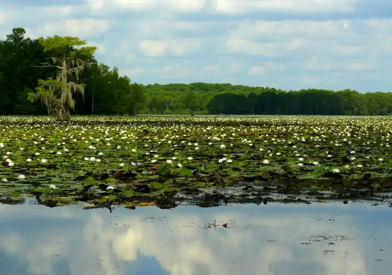 Озеро Каддо – крупное озеро в США, лежащее на востоке Техаса на границе с Луизианой. Это охраняемая территория, на которой произрастают самые большие кипарисовые леса на планете. Площадь озера – около 106 кв. км.