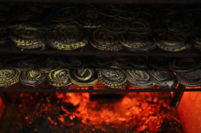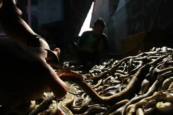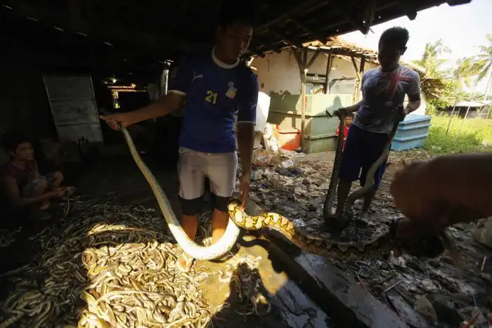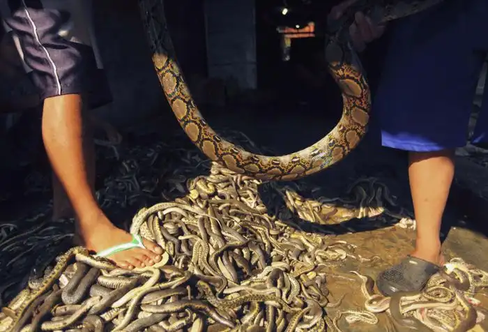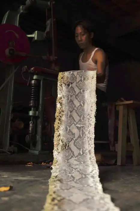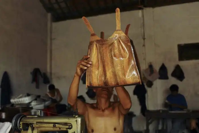 Змеиная кожа продается мешками. Стоимость сумки из натуральной змеиной