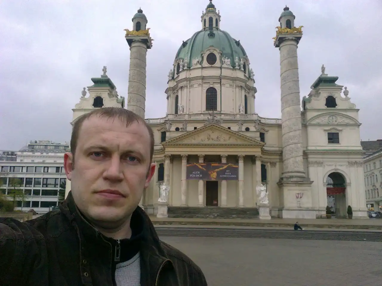 Мужчина путешествует по миру, попутно фотографируя себя на фоне достопримечательностей. Но его выражение лица запоминается надолго..