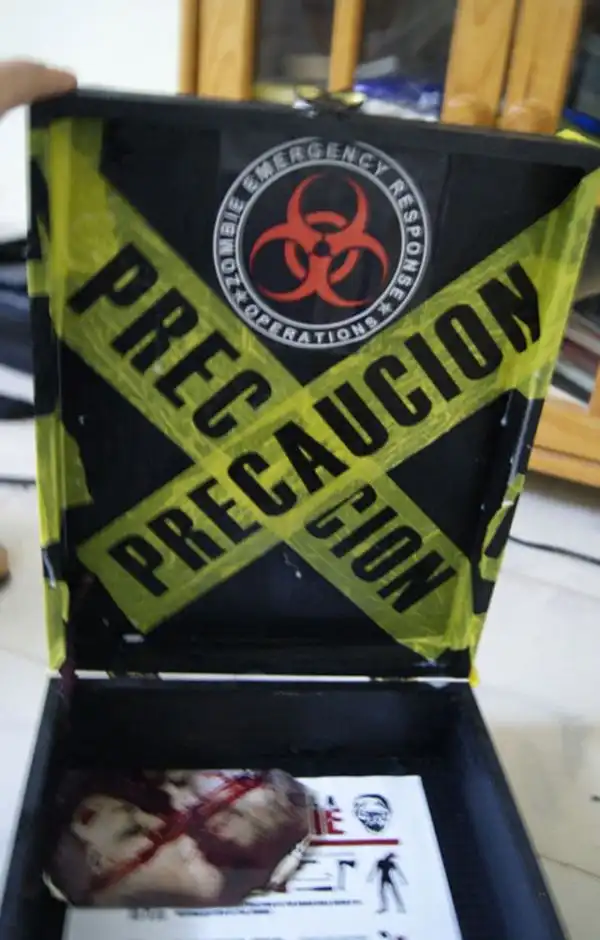 Нужно быть настоящим фанатом фильмов про зомби, чтобы заценить такой крутой подарок, ведь это настоящий набор с предметами первой необходимости в случае нападения зомби ;) Девушка очень постаралась, чтобы угодить своему парню, и своими руками сделала такой набор для выживания.