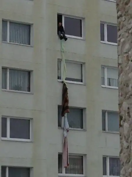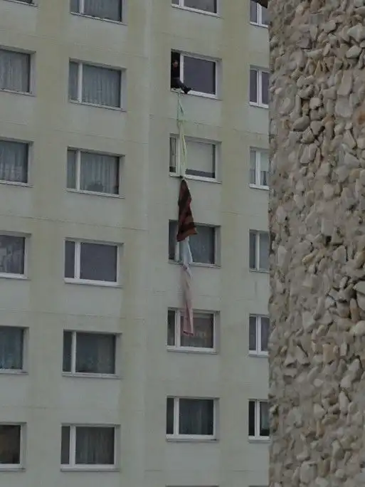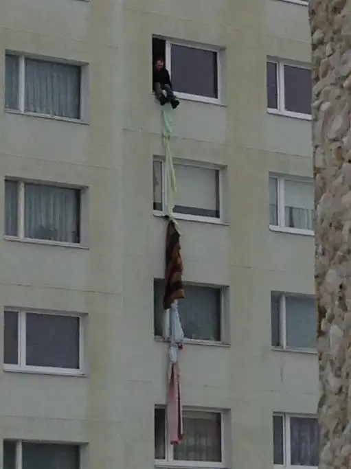 Связав себе веревку из простыней, горе-пьяница начал спускаться