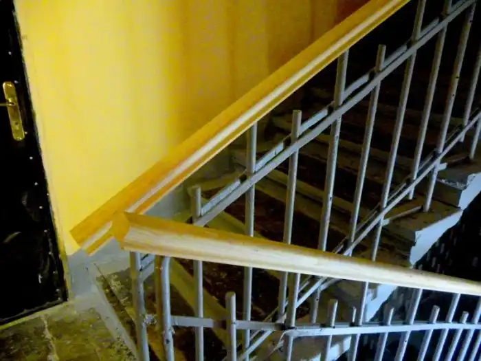 Перила в 3-ем подъезде вместо замены деревянной поверхности, как написано в документах о ремонте,