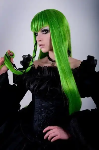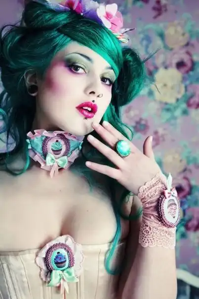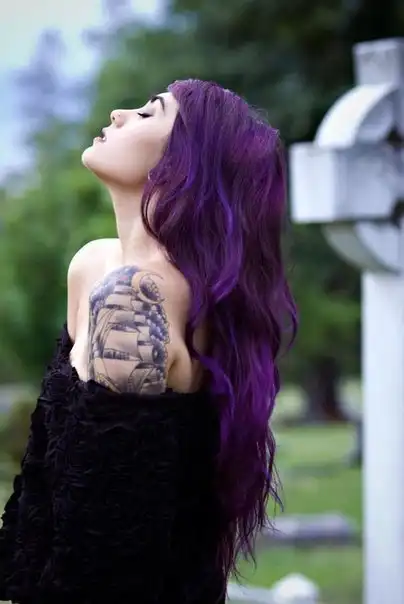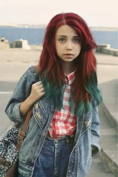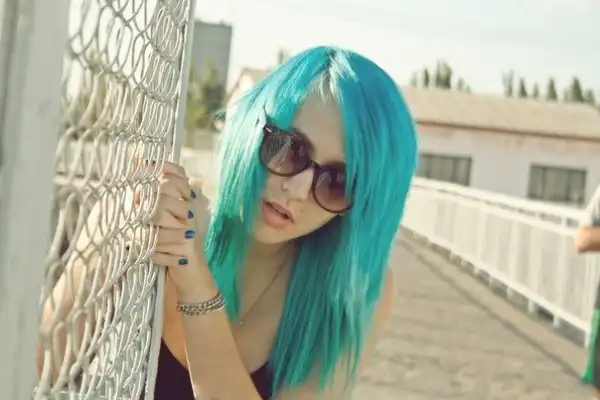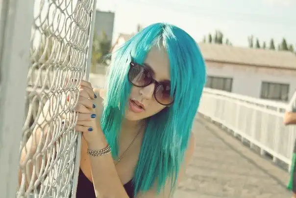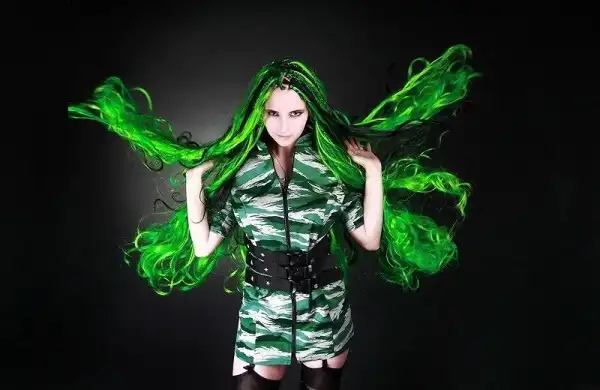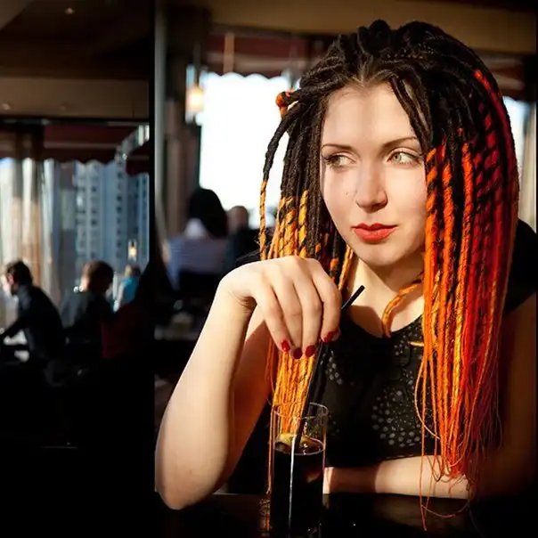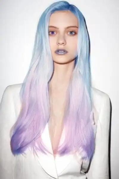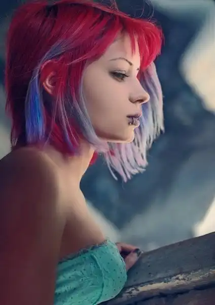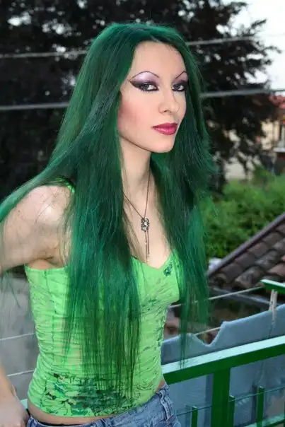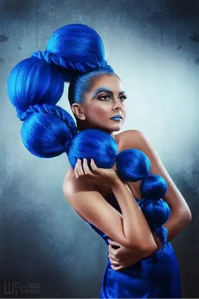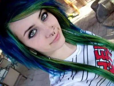 С цветными волосами.