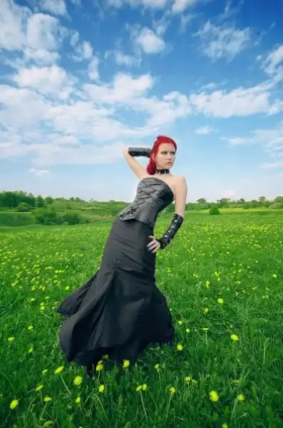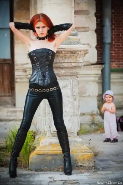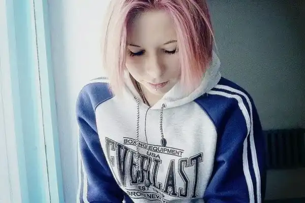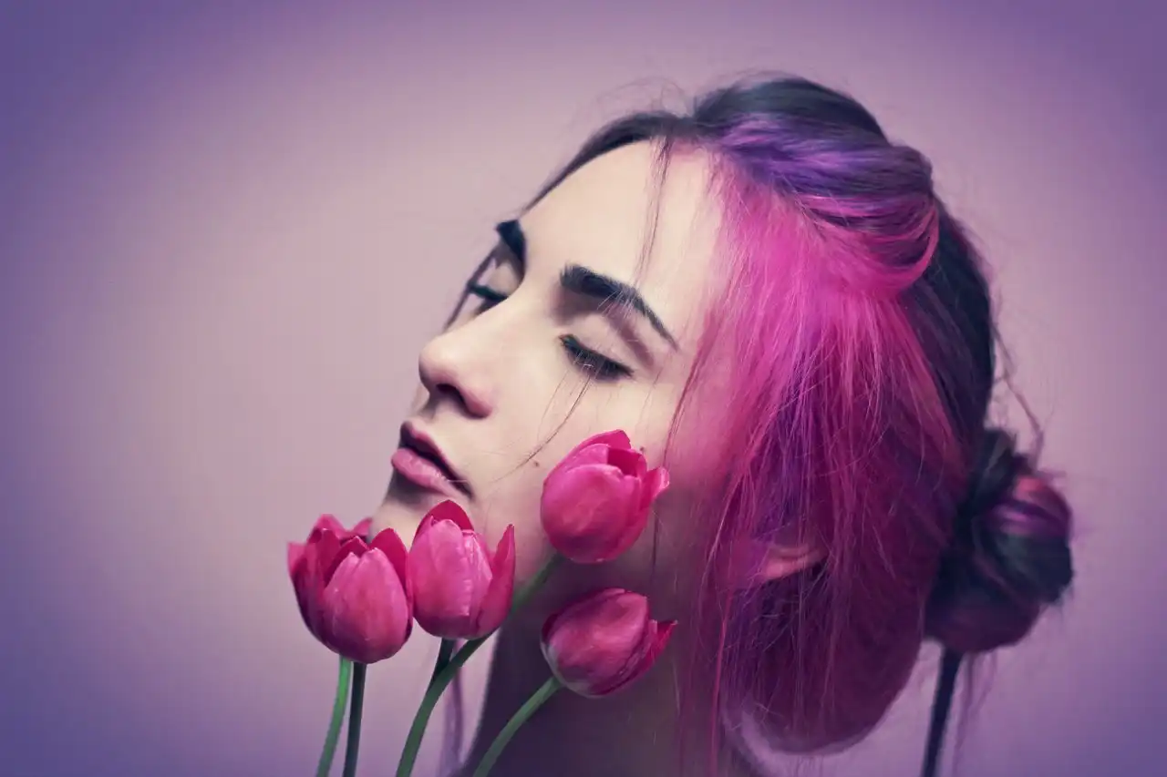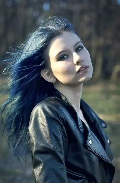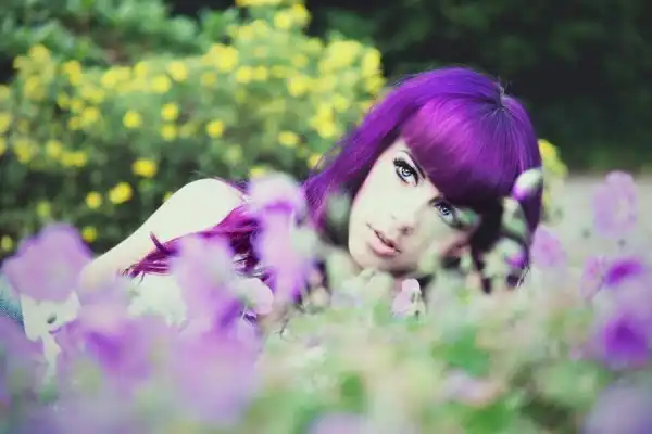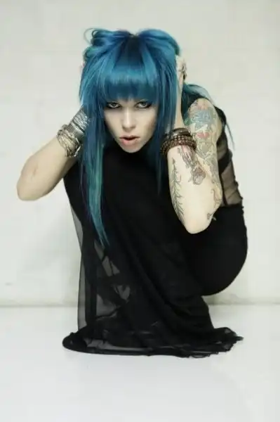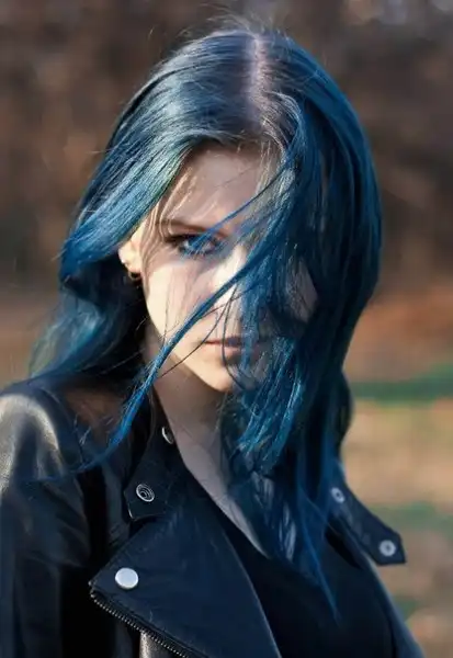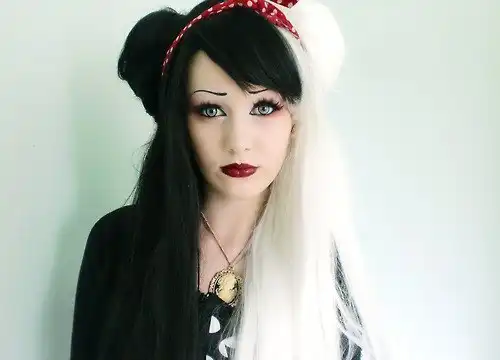 С цветными волосами.