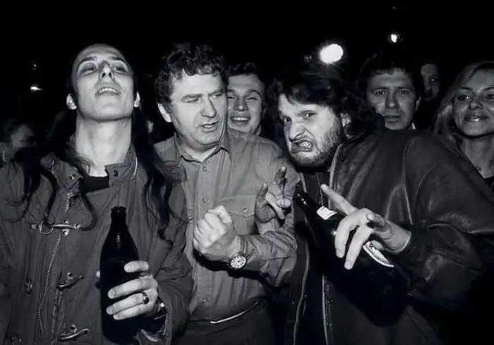 Владимир Жириновский на мероприятии открытия рок-клуба в Москве. 1992 год.