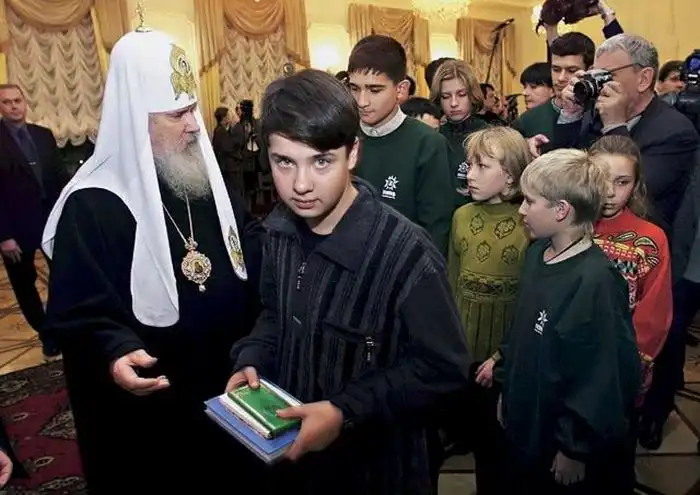 Патриарх утешает детей моряков погибших в подводной лодке "Курск". 2000 год.