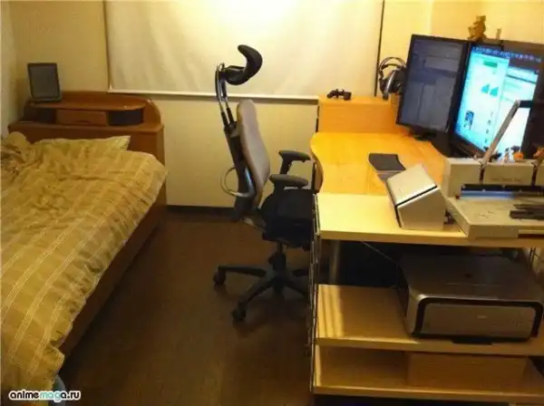 Размер жилья в Японии измеряется в татами. Татами имеют строго определённые площадь и форму. В Японии площадь комнат традиционно измеряется в татами (дзё), что учитывается при постройке дома. Площадь татами — 90×180 см (1,62 м²). В высоту мат имеет 5 см. Иногда встречаются татами в половину традиционной площади — 90×90 см. Татами, сделанные в Токио и восточной части Японии чуть уже обычных — 85×180 см. попробую посчитать размеры комнатушек на досуге. может кто быстрее сосчитает. поясняю- визуализация не моя. она японская. Самые маленькие квартиры имеют размер 3-4 татами, это где-то шесть квадратов. Обычно в таких квартирах нет даже душа, но зато цена очень демократичная, для бедных студентов в самый раз. Работающий японец может позволить себе снять квартиру побольше: стандарт на одного человека это 6 татами (10 кв. метров), здесь уже присутствует ванная комната, правда ванна сидячая, но это уже японская традиция оставшаяся с древних времён. Кухня же обчно совмещена с прихожей – с порога и сразу к столу. Но и цена за такую квартиру будет низкая, всего около 300–400 долларов в месяц,