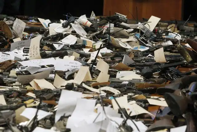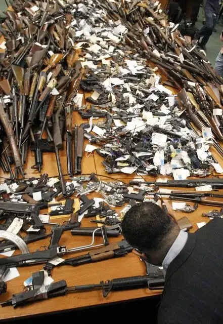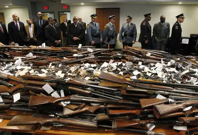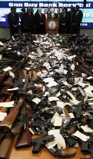 Американское правительство в рамках программы по разоружению периодически выкупает у населения огнестрельное оружие. Эти фотографии сделаны во время одной такой акции в округе Эссекс, штат Нью-Джерси. Как по мне, это самая глупая трата денег налогоплательщиков, ведь это давно не стреляющее барахло продается в основном для того, чтобы купить себе пушку получше.