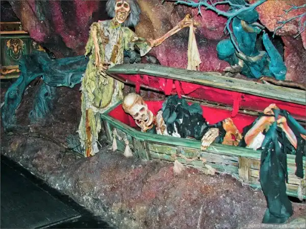 Дом с привидениями, по ощущениям очередь сюда была самая большая, чуть ли не час стояли. Но внутри весело, потолки падают, скелеты и прочая атрибутика.