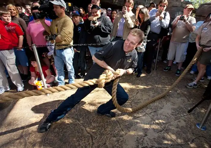 Такой живой аттракцион называется “Tiger Tug” - Тигриный канат,