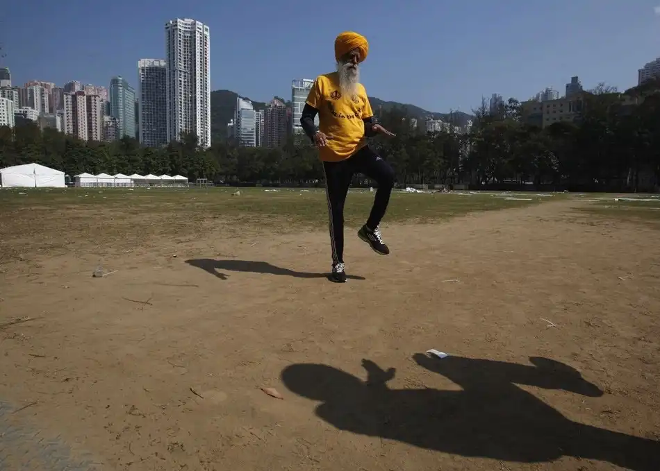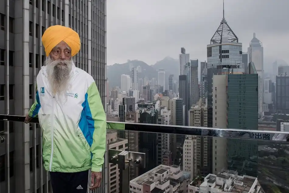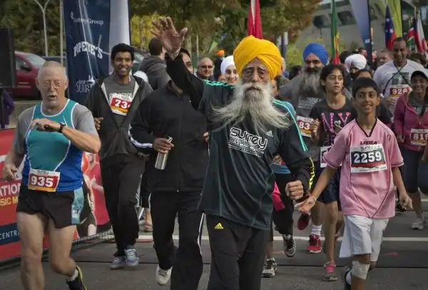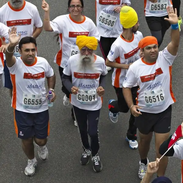 Фауджа Сингх стал марафонцем в 89 лет после смерти супруги и одного из сыновей. Он принял участие в 9 мировых марафонах, в том числе в Лондоне, Нью-Йорке и Торонто. Фауджа участвовал в эстафетах Олимпийского огня в Афинах (2004) и Лондоне (2012).