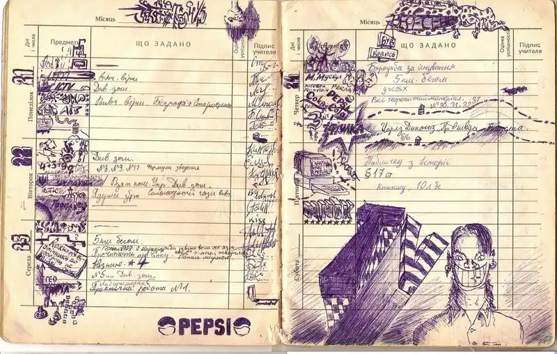 Многие из нас в школьные годы раскрашивали тетради, дневники... но это - определенно шедевр в некоторой степени! ))