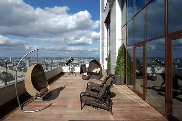 большими террасами на значительной высоте и огромными жилыми площадями.