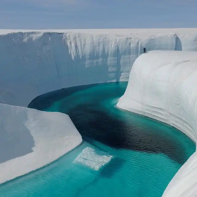 Ледяной каньон в Гренландии достигает 30 — 40 метров глубиной. История этого места говорит, что когда-то оно было полностью покрыто снегом. Ошеломляющий Каньон был вырезан Талой водой и является одним из самых узнаваемых мест страны. Гренландия известна всеми видами спорта, отдыхом и также туризмом. Природа здесь не так пострадала от деятельности человека. Красивые пляжи, огромные и красивые ледники, которые рождают эти огромные ледяные города — территория очень красива и живописна. Фактически, Ледяной Каньон Гренландии одно из наиболее фотографируемых мест на земле.