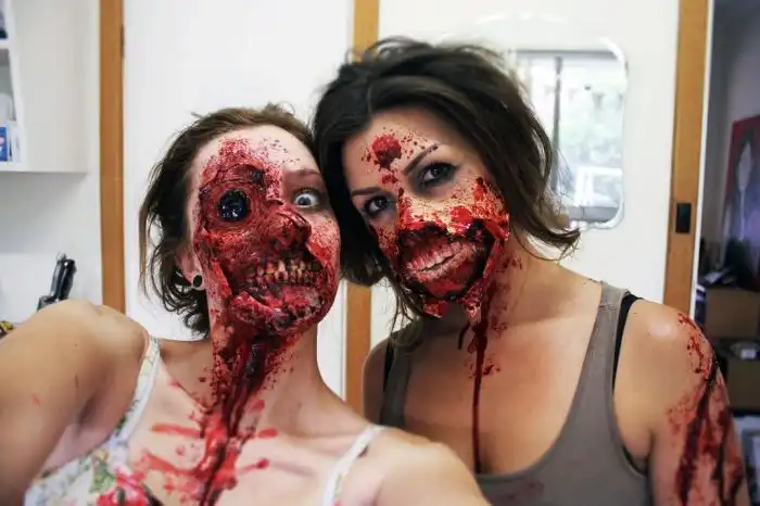 Слишком уж реалистичный грим сделали этим фанаткам фильмов про зомби.