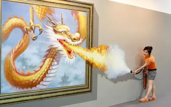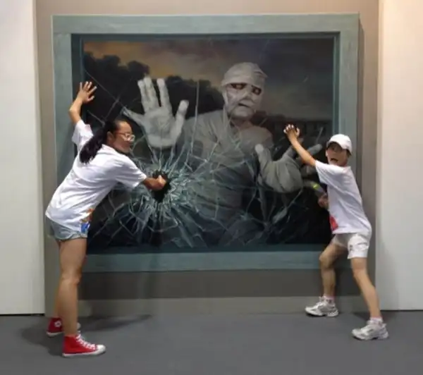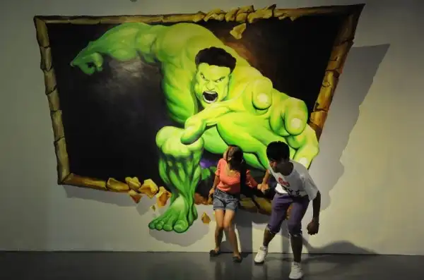 Объемные рисунки не просто можно, но и нужно трогать руками, ложиться на них всем телом или даже засовывать голову внутрь изображения. Со всеми картинами-иллюзиями в этой нестандартной галлерее можно сфотографироваться. И, судя по несходящим с лиц посетителей улыбкам, необычная выставка картин пришлась всем по душе.
