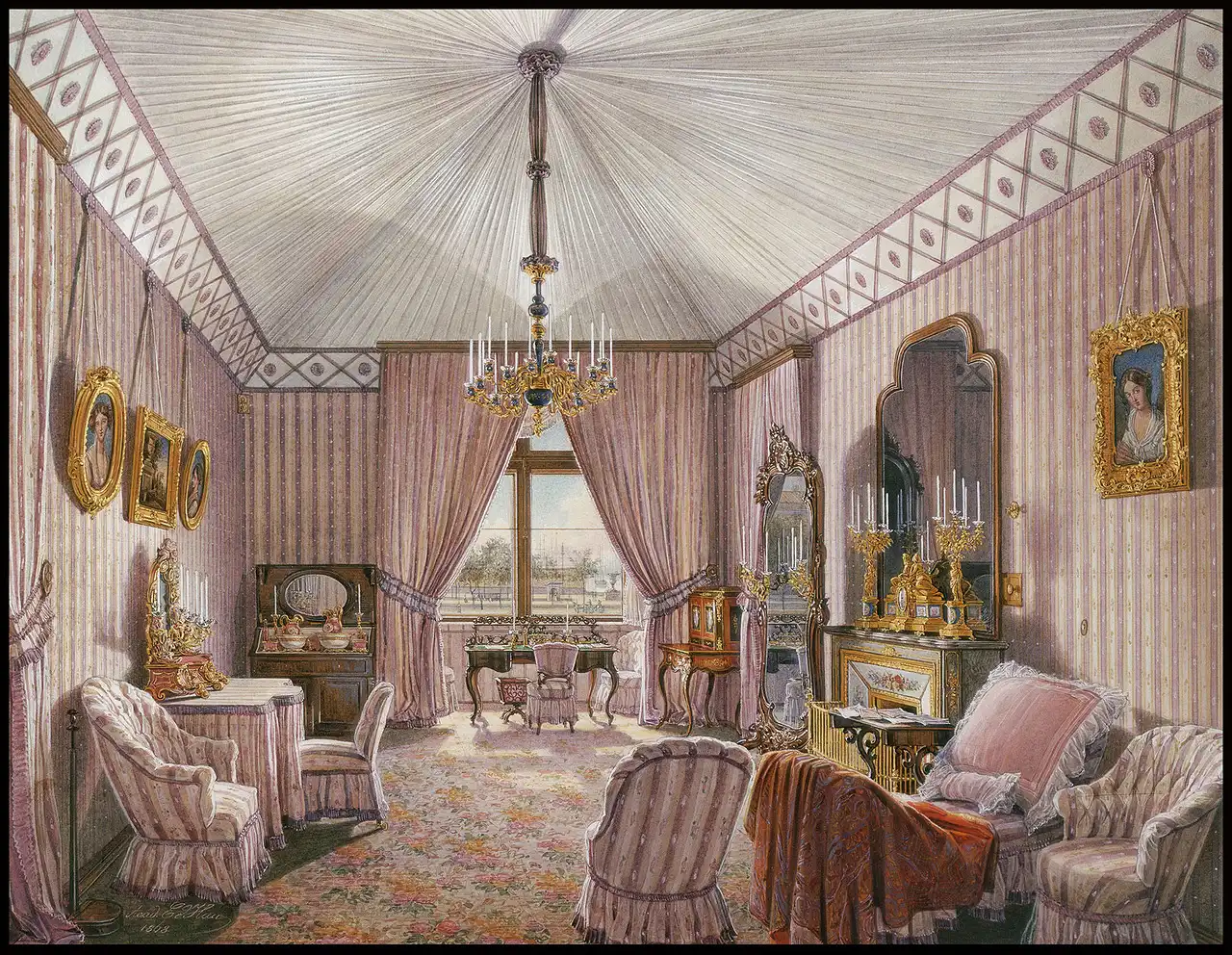 В истории живописи существует жанр изображения жилого, дворцового, церковного интерьера, зародившийся в голландском искусстве XVII веке (Питер Санредам, Эммануэл де Витте и др.) и фламандской живописи, но уходящий корнями в искусство Итальянского и Северного Возрождения XV - XVI вв. Декоративная роспись в интерьере и интерьер в живописи культивировались в первую половину XVII веке в эпоху Рококо, в искусстве Неоклассицизма второй половины XVIII века. В период Романтизма, особенно в английском искусстве, сформировался жанр портрета в интерьере.В России к изображению интерьера обращались в XIX веке художники венецианской школы. Интерьер часто играет большую роль в картинах на бытовые и исторические сюжеты.