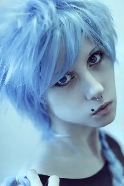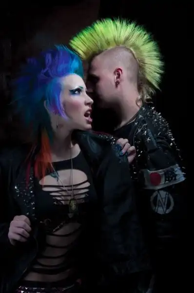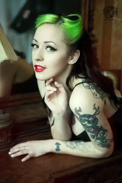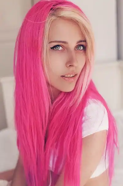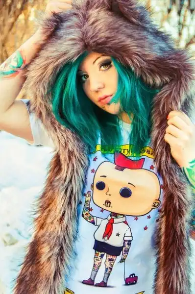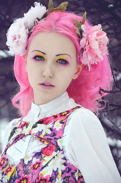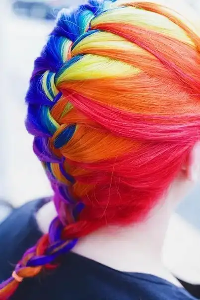 С цветными волосами.