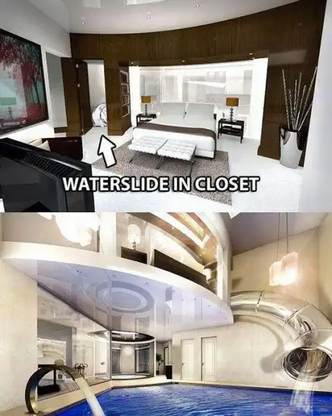 10. Водная горка, по которой из ванной можно съехать прямо в бассейн