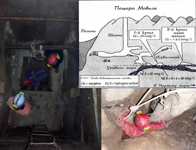 В 1986 году во время геологических исследований перед строительством электростанции неподалеку от румынского города Мангалия на глубине около 18 метров была обнаружена закрытая пещерная система со своеобразными условиями. Питаемая подземными водами со значительным содержанием сероводорода (8-12 мг/л), пещера, названная Мовиле, имела свою атмосферу, бедную кислородом (7-10%), богатую углекислым газом (2-3.5%) и содержащую значительное количество метана (1-2%). Ее исследование началось в 1990 году.
