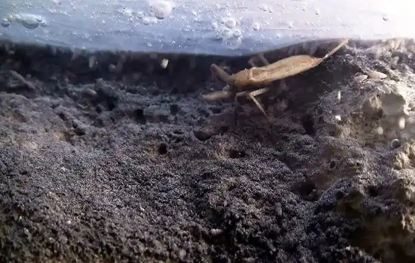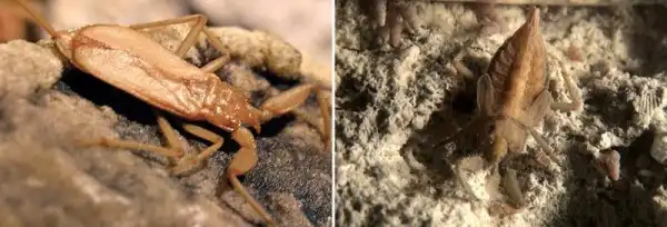 Водяной скорпион Непско anophthalma (справа - в стадии нимфы) – еще один эндемик Мовиле. Он охотится на ракообразных и насекомых, и живет в основном в воде.