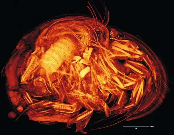 Снятый при помощи лазерной конфокальной микроскопии небольшой рачок-остракод, представитель планктона подземного озера Мовиле.