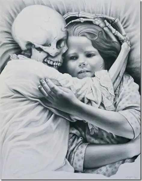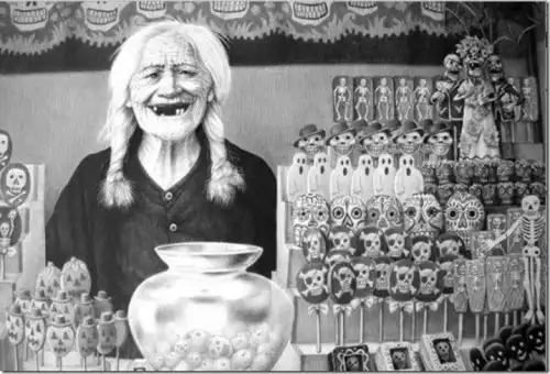 Об одном из своих изображений Лори говорит: «Прекрасная Леди Смерть часто появляется в мексиканском народном искусстве. Это — моя очень кропотливая работа. На кружева у меня ушла масса времени, это почти убило меня, но результат получился соответствующий стараниям.»