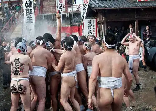 Этот день - праздник обнаженных мужчин. Где еще увидишь представителей сильного пола в возрасте от 23 до 43 лет, раздетых до набедренных повязок? Они бегают целый день по городу, подогревая себя саке ии пытаются очиститься от неприятностей и бед.
