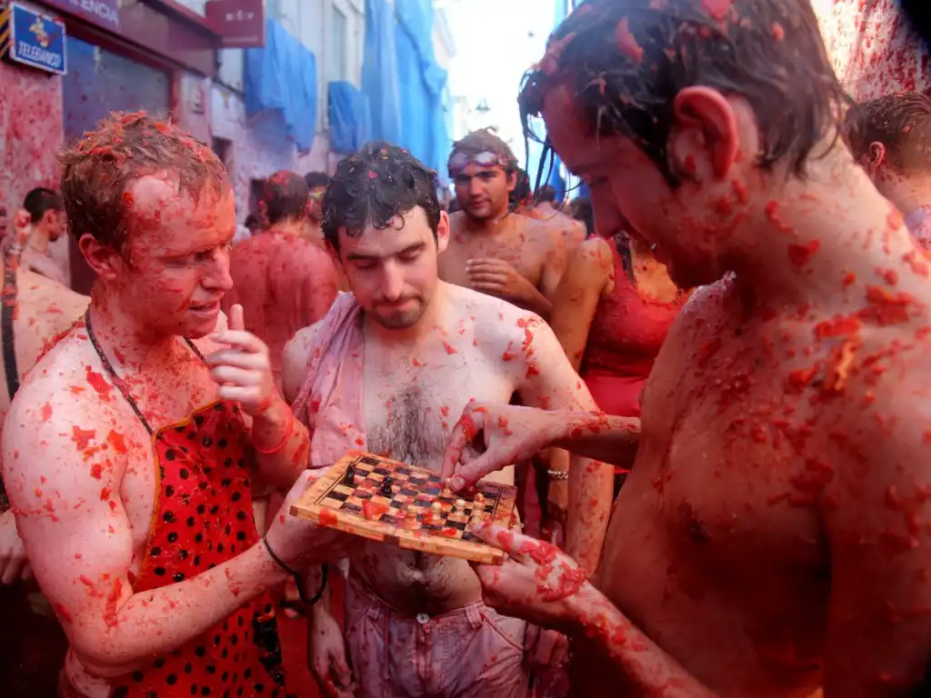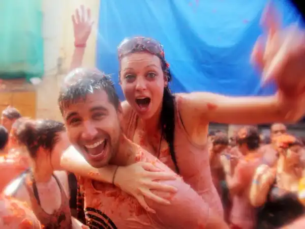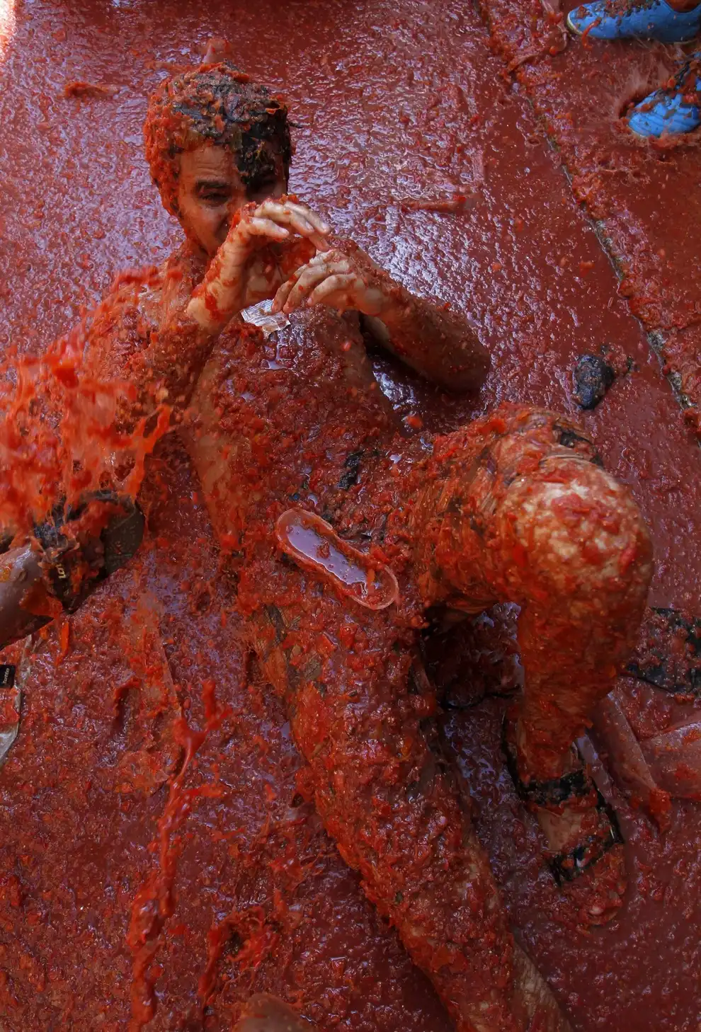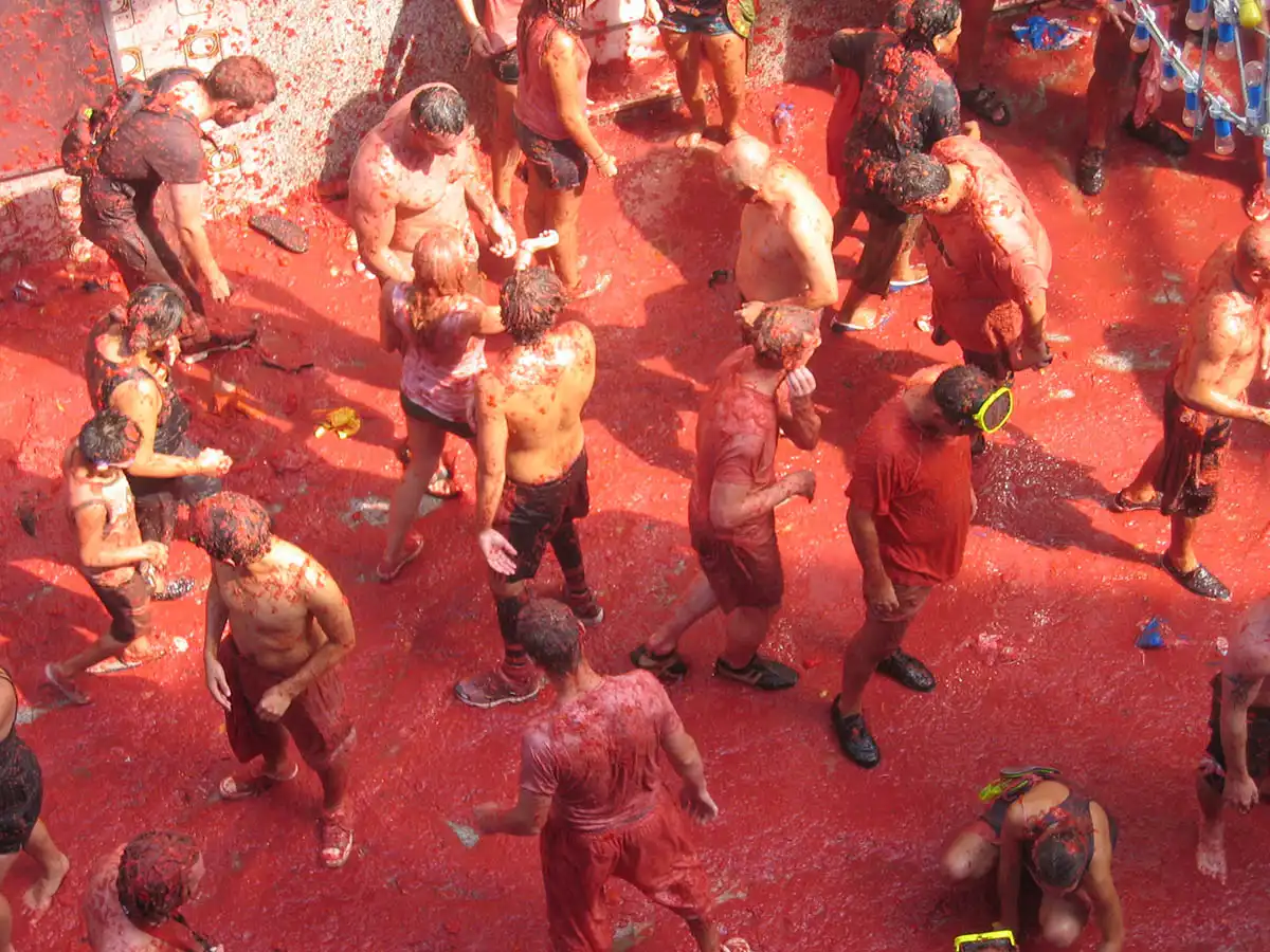 100 тонн помидоров раскидывают и растаптывают 9 000 жителей и 50 000 туристов.