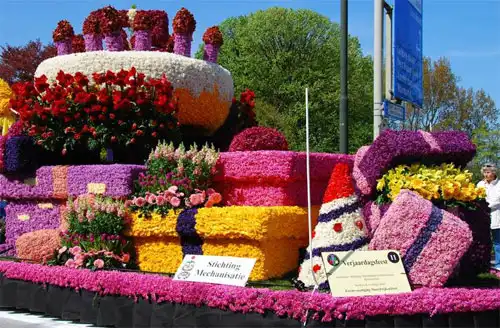 Городок Алсмер превращается в огромный букет из тюльпанов. Платформы, украшенные живыми цветами, движутся по центральной улице.