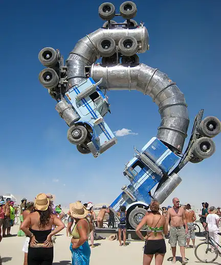 На 8 дней пустыня превращается в огромную сцену: художники, музыканты, диджеи, артисты самовыражаются как могут. В конце сжигается огромная деревянная статуя.