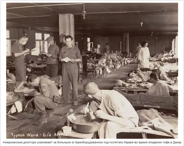 Дахау был освобожден 29 апреля 1945 года, но медицинская помощь заключенным начала предоставляться лишь через несколько дней - 3 мая 1945 года, когда в Дахау прибыл 116-й эвакуационный госпиталь США. Несвоевременно оказанная медицинская помощь и плохое снабжение продуктами привели к вспышке эпидемии. Согласно докладу, сделанному 20 мая 1945 года, в среднем 140 заключенных умирали каждый день в лагере, причинами их смерти были голод, туберкулез, сыпной тиф и дизентерия. Около 4000 заключенных находились в тюремной больнице и неизвестное число больных заключенных в бараках, не получавших медицинской помощи.