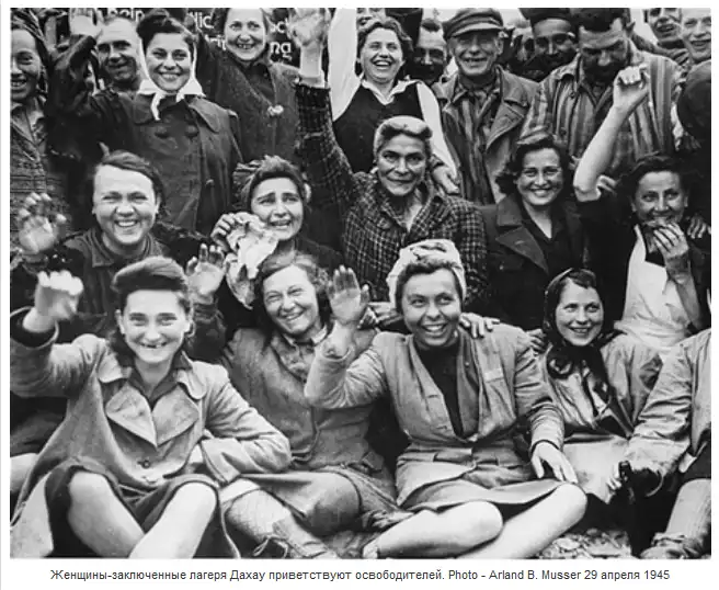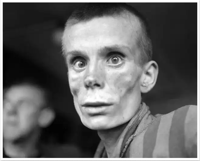 Это фото присутствует практически во всех "холокостных" подборках фотографий, где его обычно подписывают "Истощенная 18-летняя русская девушка смотрит в объектив во время освобождения концентрационного лагеря «Дахау» в 1945 году". Подпись вызывает некоторые сомнения, хотя бы тем, что у "девушки" явственно просмотраивается кадык. Кроме того, с первых минут освобождения лагеря Дахау, в нем работали фотокорреспонденты различных средств массовой информации, и в тот момент они зафиксировали несколько иное физическое состояние узников.