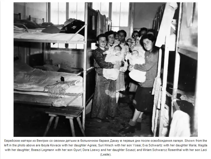 Уже после публикации этой заметки выяснилось, что автором фото, на котором якобы изображена измученная холокостом девушка, является Эрик Шваб (Eric Schwab) - фотокорреспондент информационного агентства "Франс-Пресс". В мае 1945 г. (лагерь был освобожден в апреле) он выполнил множество портретных снимков заключенных в лагерной больнице.