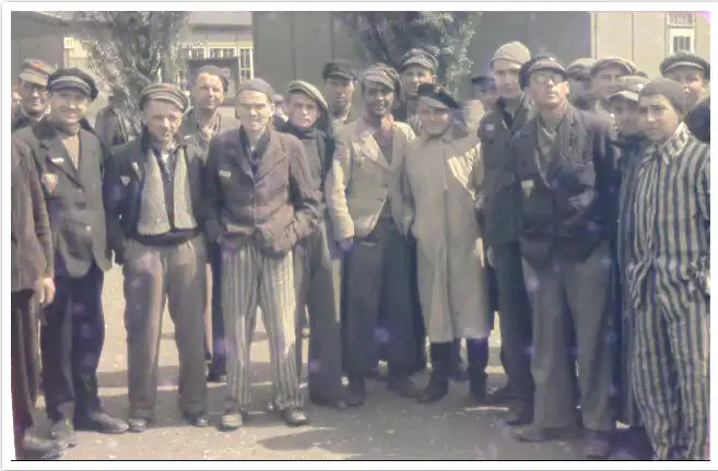 На нижних фото изображены заключенные мужчины лагеря Дахау на второй день после освобождения лагеря. Как и женщины, они также явно не в дистрофическом состоянии. Чем мужчины занимались в день освобождения - смотрите здесь. Почти половина из них отбывала в лагере срок за уголовные преступления.