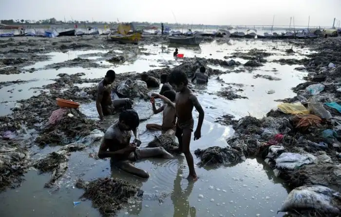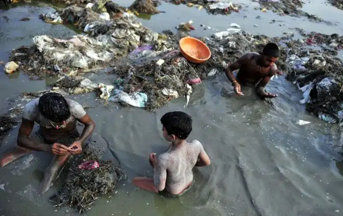 Местные жители, несмотря на это ищут в мутной воде мелочь и золотые украшения, которые часто теряются на