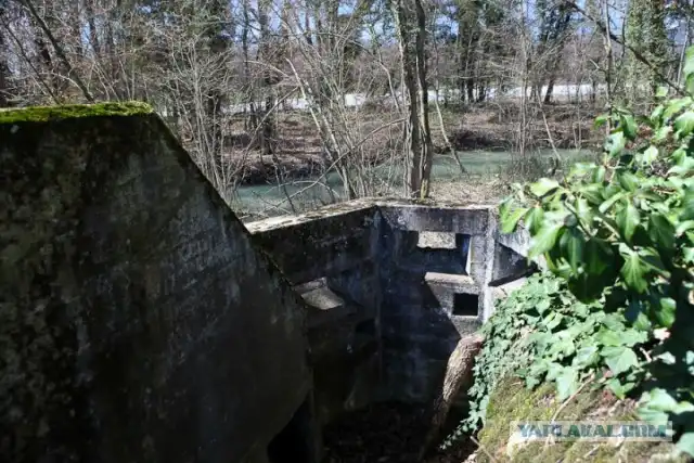 Блоки и укрепления стоят четко вдоль естественного препятствия - горной реки.