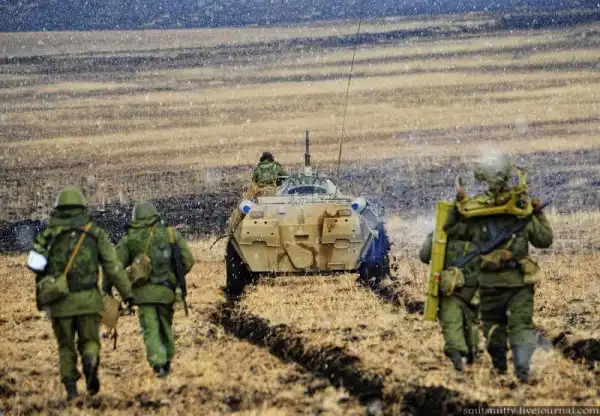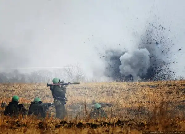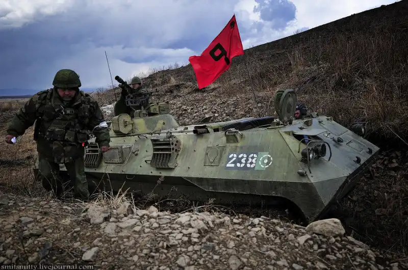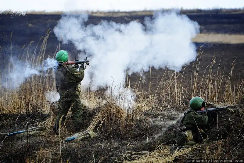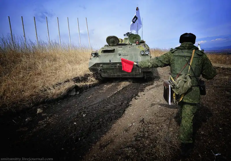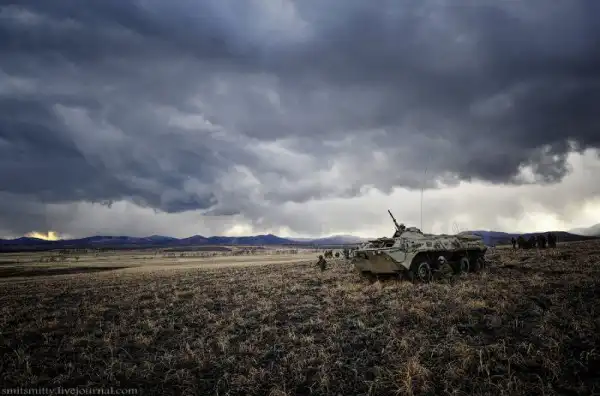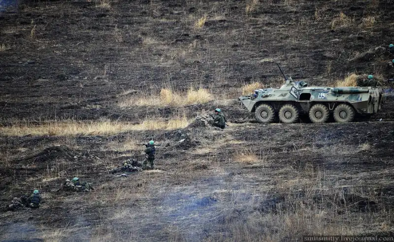 Треск автоматов, оглушительный свист гранатометов и рокот пулеметов БТР-80 заполняет полигон. На рубеж заступает пехота!
