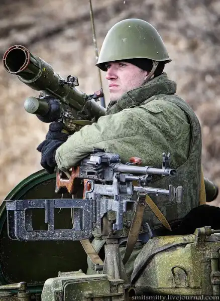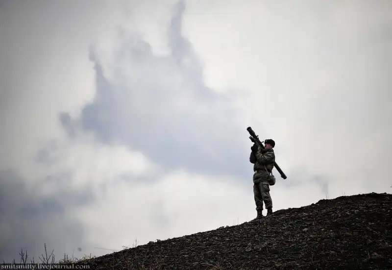 Боец с переносным зенитно-ракетным комплексом Игла, наблюдает за воздушным пространством
