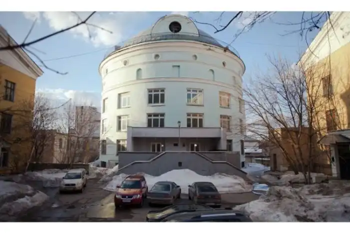 Между Ленинским проспектом и улицей Косыгина во дворах находится странное здание с куполом,