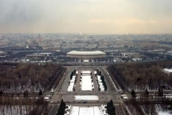 дальше — Москва-река, мосты, «Лужники», высотка МГУ, «Сити»,