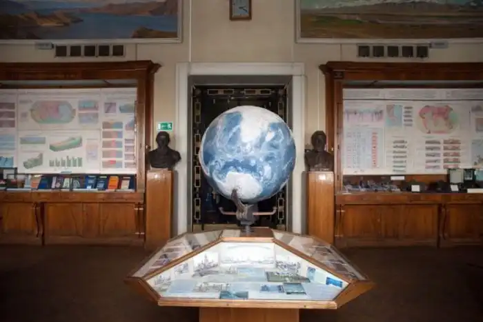 набитый макетами и фотографиями станций дальней радиосвязи,
