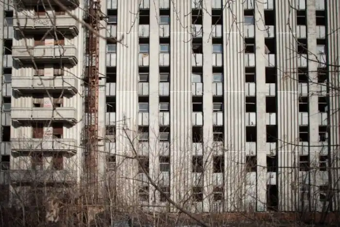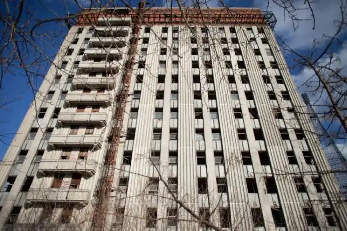 Заброшенное с 1990-х годов, недостроенное здание телецентра у метро «Шаболовская».