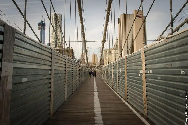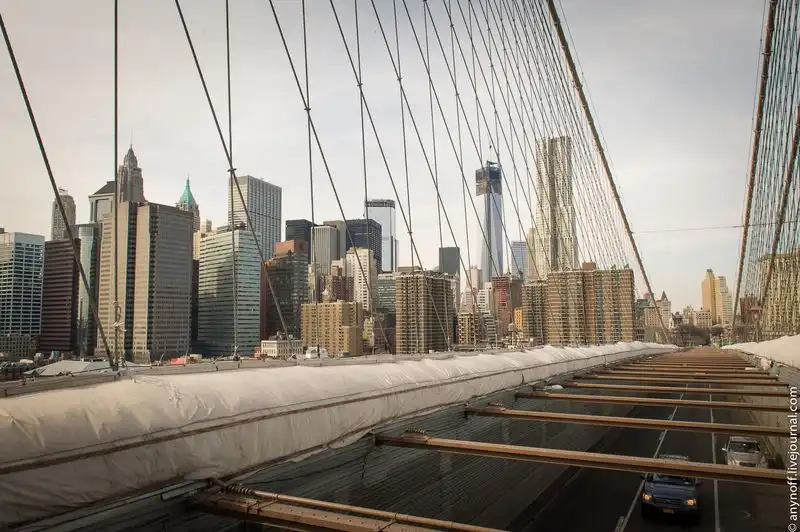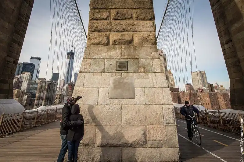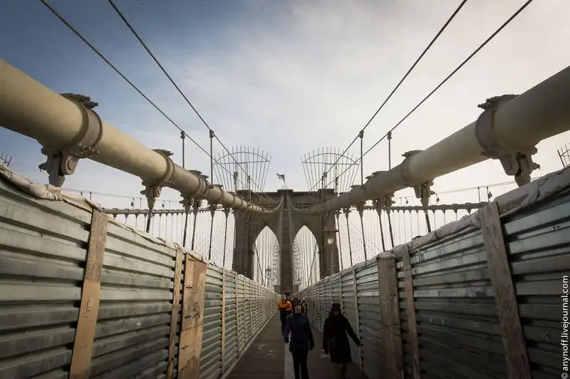 Бруклинский мост - это важная городская артерия между Манхеттеном и Бруклином общей длиной 1825 метров, раскинувшаяся над водами Ист-Ривер. Свое современное название мост получил в 1915 году, а на момент открытия, состоявшегося в мае 1883 года, этот потрясающий индустриальный великан именовался Нью-Йоркским мостом. Но было бы неправильным считать мост лишь рядовой городской транспортной магистралью, для американцев - это настоящий символ страны и города, а для туристов важная и обязательная для посещения достопримечательность. Мост - один из старейших мостов в США, подвесная система которых выполнена из стальных тросов, в то далекое время это был настоящий инженерный прорыв.