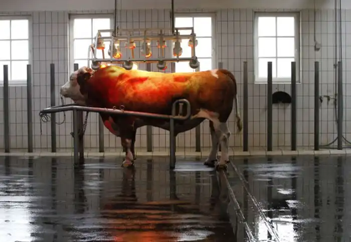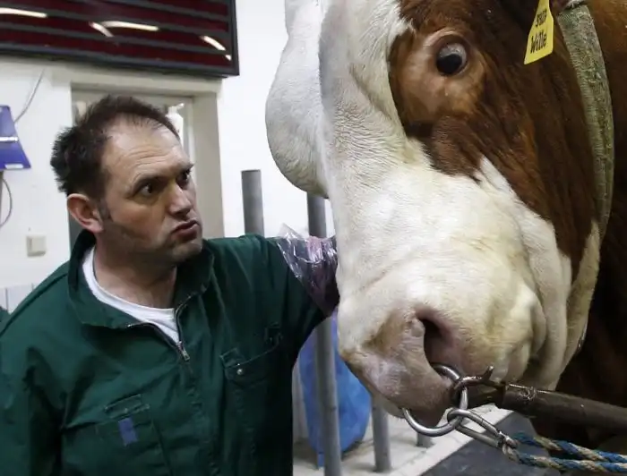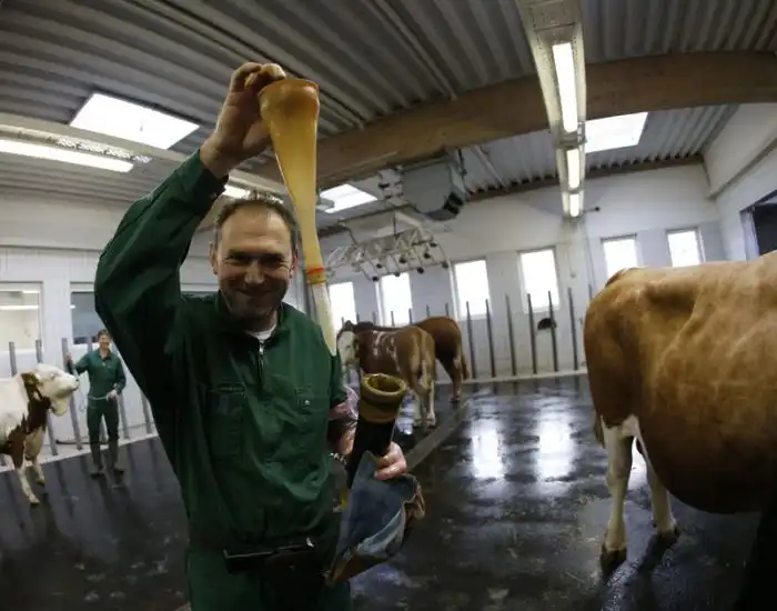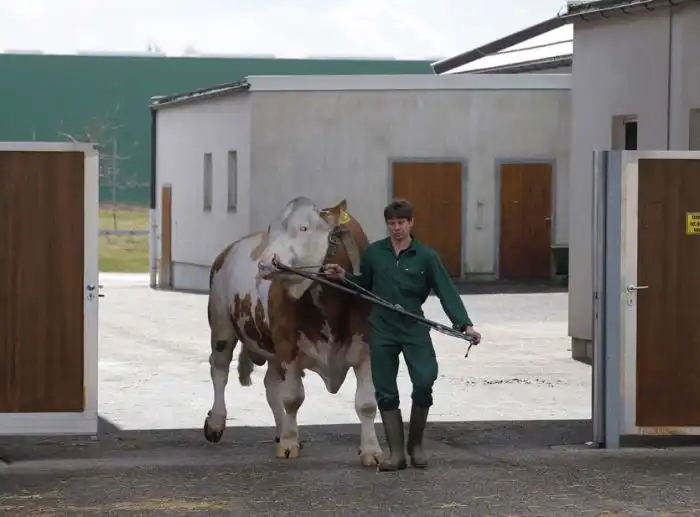 Фотограф Леонард Фойгер побывал на одном из австрийских центров искусственного оплодотворения, где ему удалось сделать довольно интересный фотоотчет о том, как работники центра осуществляют забор спермы у племенных быков. Что самое интересное, после проверки качества семени, оно рассылается в 52 страны мира, а по результатам прошлогодних подсчетов, за 2012 год было в общей сложности продано более 800 тысяч образцов спермы этих племенных быков по всему миру.