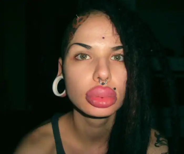 Кристина Рэй - 22-летняя девушка, проживающая в Санкт-Петербурге. Она попала в Книгу рекордов Гиннеса, как обладательница самых больших в мире губ. Что самое интересное, эта девушка не захотела останавливаться на достигнутом и постоянно продолжает модифицировать (хотя я бы сказал - уродовать) свою внешность.
