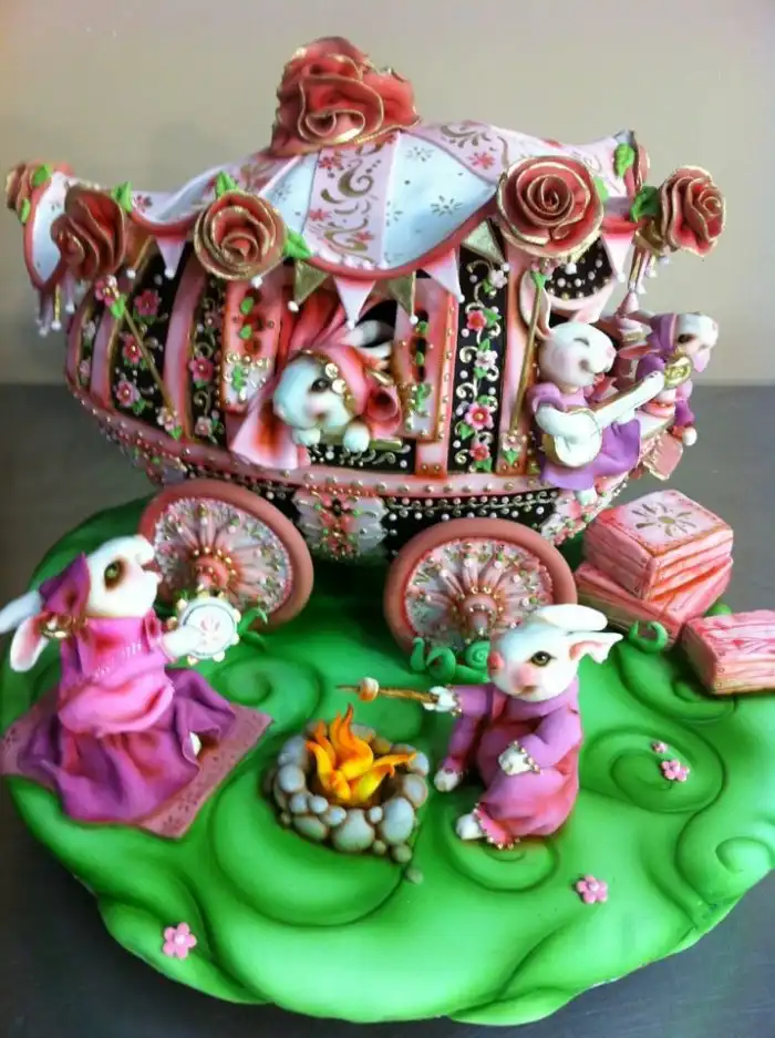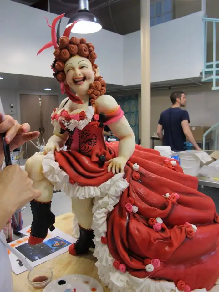 Как ни странно, но до того, как стать кондитером, Карен Порталео (Karen Portaleo) была скульптором, использовавшим в качестве рабочего материала глину. Все торты «Highland Bakery» пекутся в стандартных формах и только затем замораживаются для того, чтобы кондитеры могли создать необходимую форму. После формирования, торт покрывается глазурью необходимых расцветок. Самой дорогой работой у Карен пока остается дорожный сундук за $5000, который «Highland Bakery» создавали для 40-летнего юбилея. Торт был рассчитан на 200 персон. Карен совсем не жалко, когда такую красоту разрезают и едят. Она наоборот вдохновляется происходящим. Ведь это значит, что труд оценен.