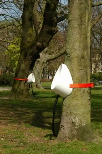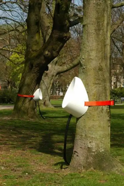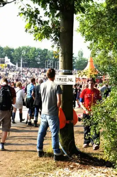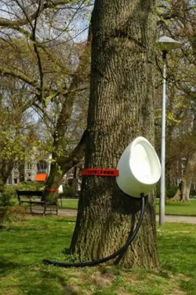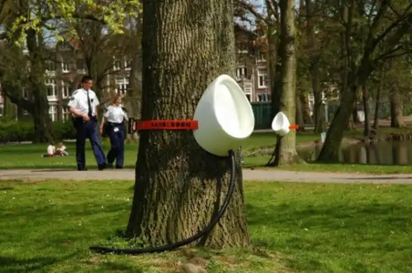 А так фестивали музыки проходят часто под открытым небом и собирают тысячи людей, местные власти решили ограничить засорение окружающей среды, путем установки писуаров прямо на деревья.