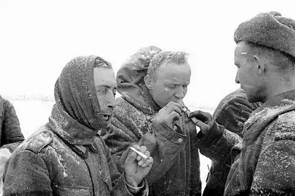 Залп советских реактивных установок «Катюша» на подступах к Выборгу