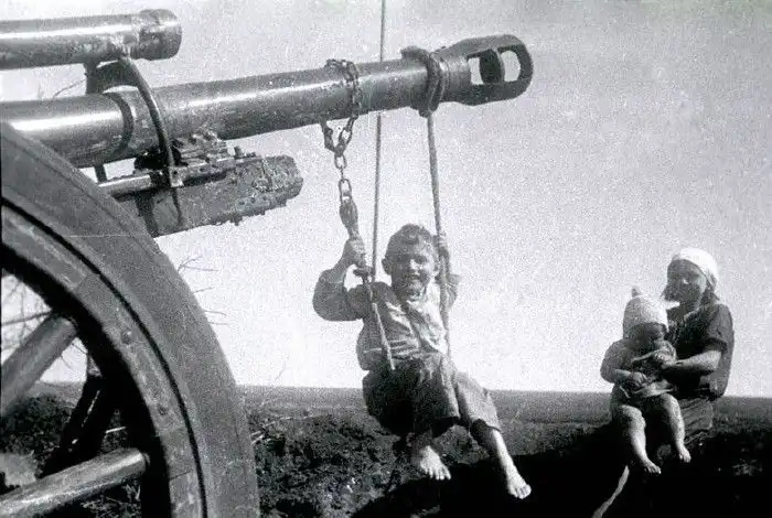 Фонтан «Детский хоровод» на вокзальной площади Сталинграда после налета фашистской авиации
